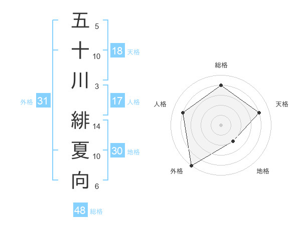 五十川 緋夏向さんを姓名の画数から五運を鑑定