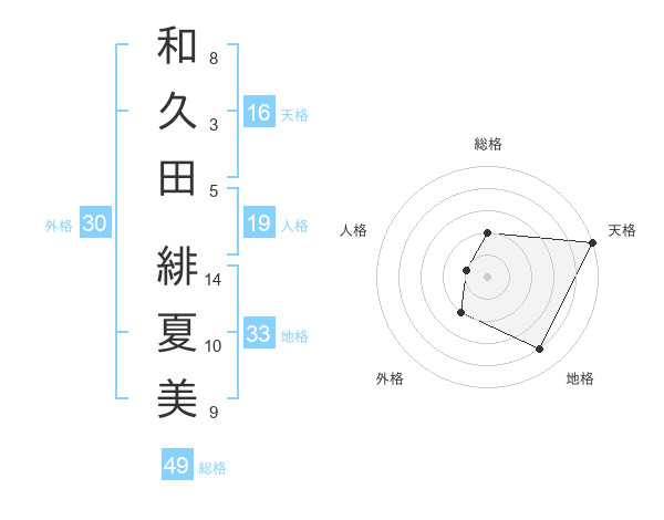 和久田 緋夏美さんを姓名の画数から五運を鑑定
