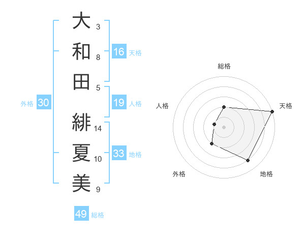 大和田 緋夏美さんを姓名の画数から五運を鑑定