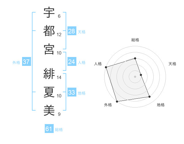 宇都宮 緋夏美さんを姓名の画数から五運を鑑定