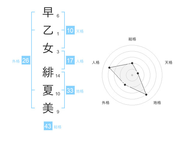 早乙女 緋夏美さんを姓名の画数から五運を鑑定