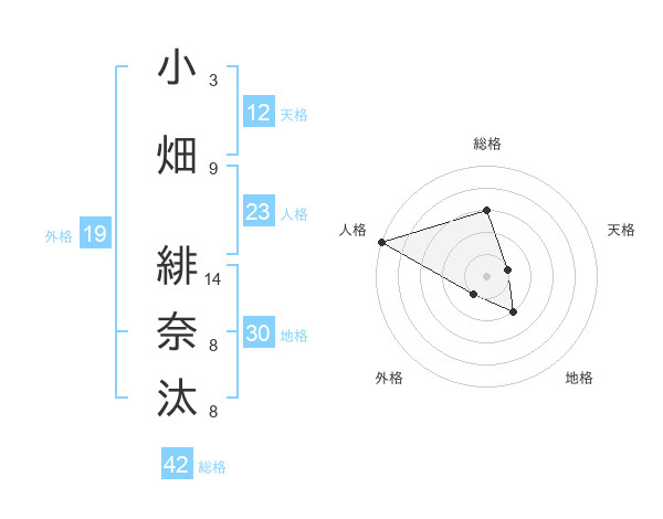 小畑 緋奈汰さんを姓名の画数から五運を鑑定