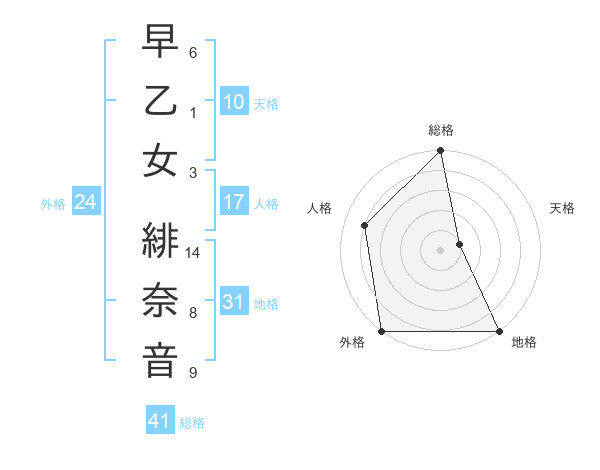 早乙女 緋奈音さんを姓名の画数から五運を鑑定