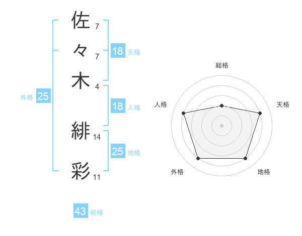 佐々木 緋彩さんの総格は43画の2点!