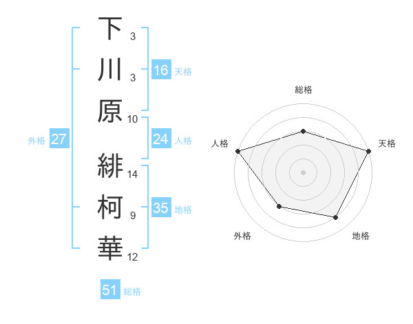下川原 緋柯華さんの総格は51画の3点!