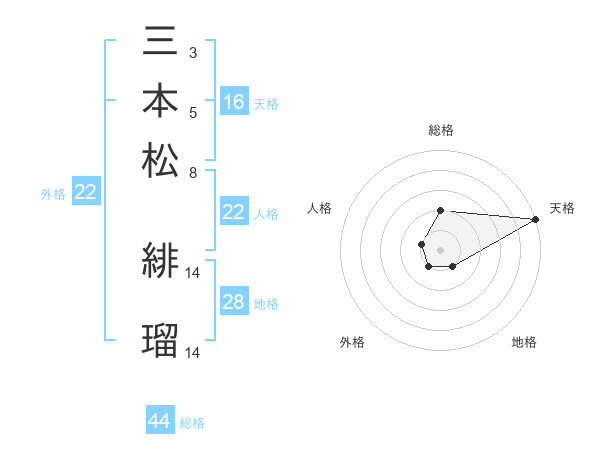 三本松 緋瑠さんの天格は16画の5点!