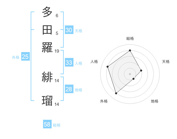 多田羅 緋瑠さんを姓名の画数から五運を鑑定