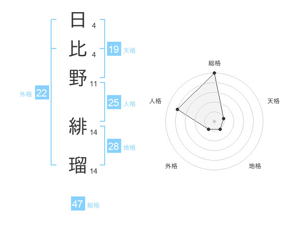 日比野 緋瑠さんの総格は47画の5点!