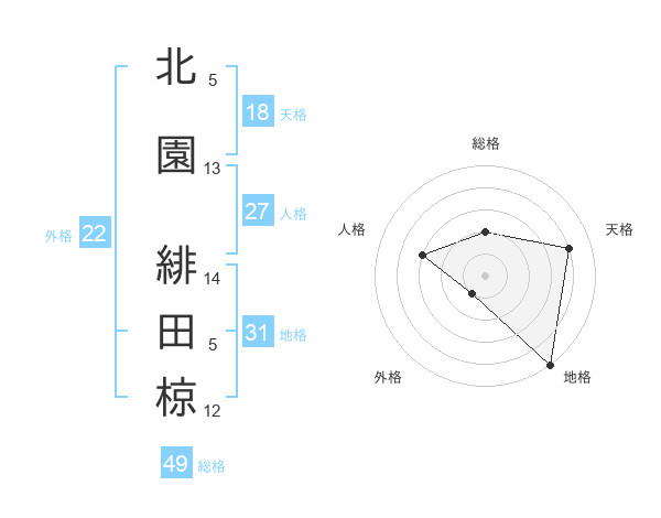 北園 緋田椋さんを姓名の画数から五運を鑑定