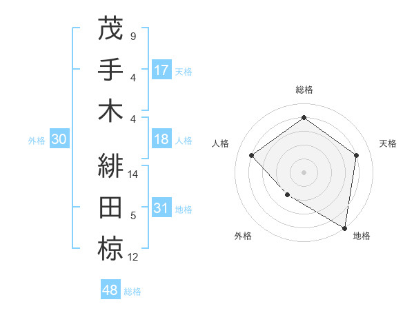 茂手木 緋田椋さんの地格は31画の5点!