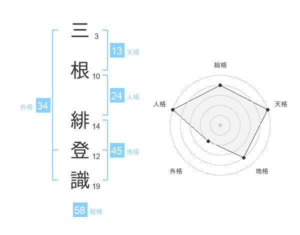三根 緋登識さんの総格は58画の4点!