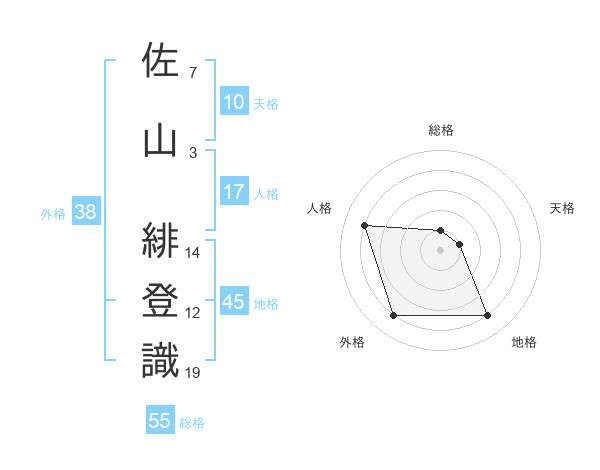 佐山 緋登識さんを姓名の画数から五運を鑑定