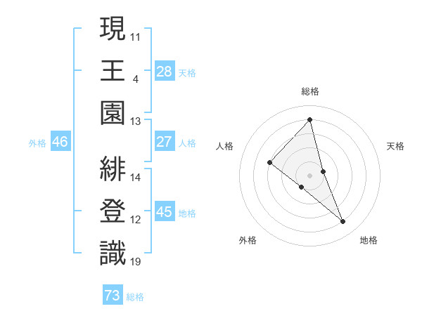 現王園 緋登識さんを姓名の画数から五運を鑑定