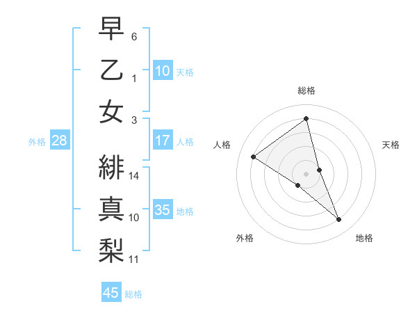 早乙女 緋真梨さんを姓名の画数から五運を鑑定
