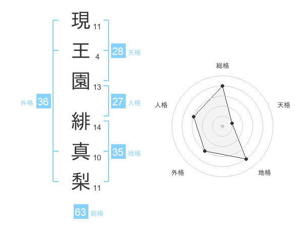 現王園 緋真梨さんを姓名の画数から五運を鑑定