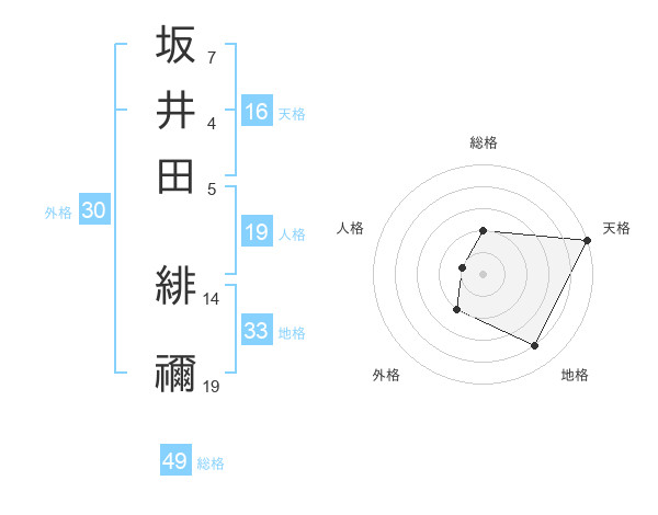 坂井田 緋禰さんを姓名の画数から五運を鑑定