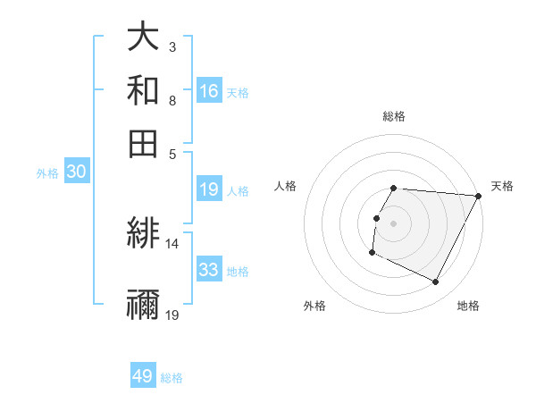 大和田 緋禰さんを姓名の画数から五運を鑑定