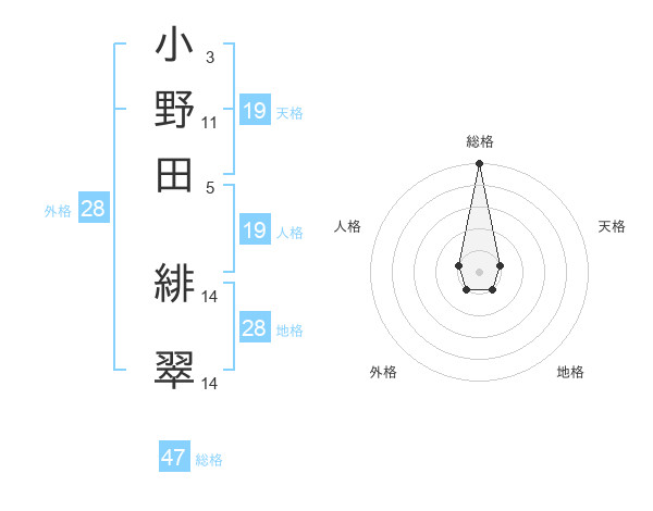 小野田 緋翠さんを姓名の画数から五運を鑑定
