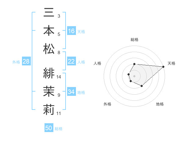 三本松 緋茉莉さんの天格は16画の5点!