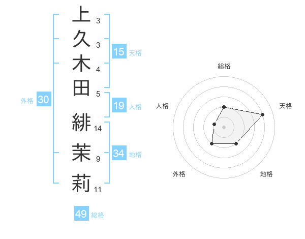 上久木田 緋茉莉さんの天格は15画の4点!