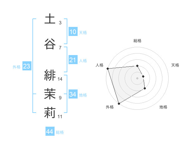 土谷 緋茉莉さんの総格は44画の2点!