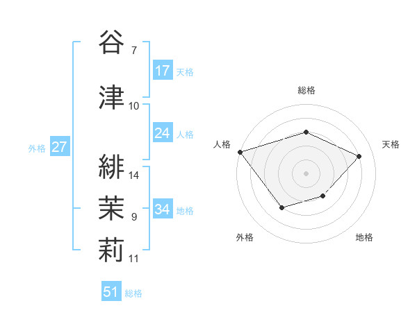 谷津 緋茉莉さんを姓名の画数から五運を鑑定