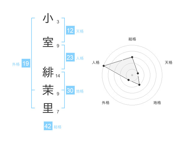 小室 緋茉里さんを姓名の画数から五運を鑑定
