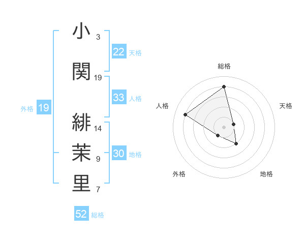 小関 緋茉里さんを姓名の画数から五運を鑑定