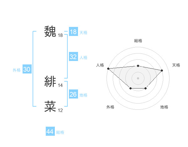 魏 緋菜さんの天格は18画の4点!
