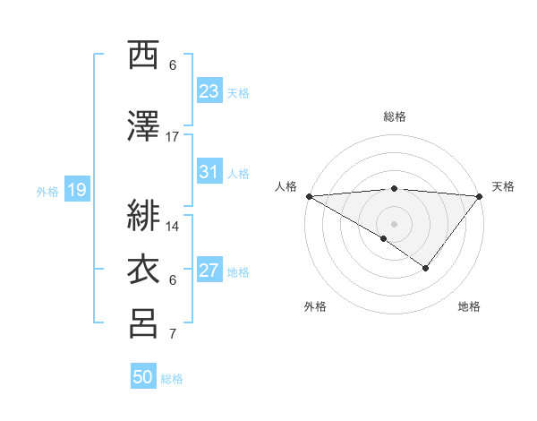 西澤 緋衣呂さんを姓名の画数から五運を鑑定