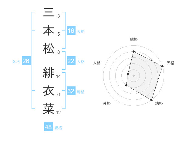 三本松 緋衣菜さんの総格は48画の4点!