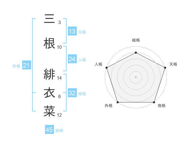 三根 緋衣菜さんを姓名の画数から五運を鑑定