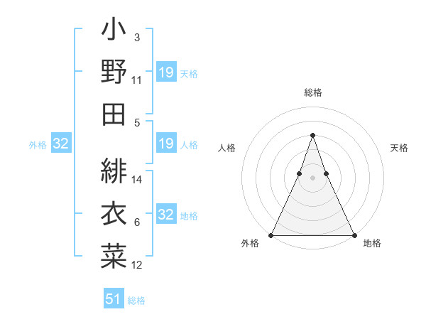 小野田 緋衣菜さんを姓名の画数から五運を鑑定