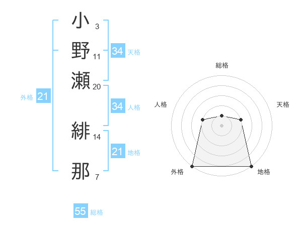 小野瀬 緋那さんを姓名の画数から五運を鑑定