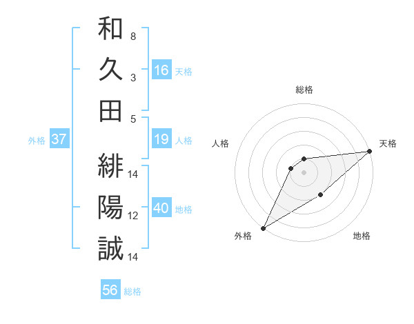 和久田 緋陽誠さんを姓名の画数から五運を鑑定