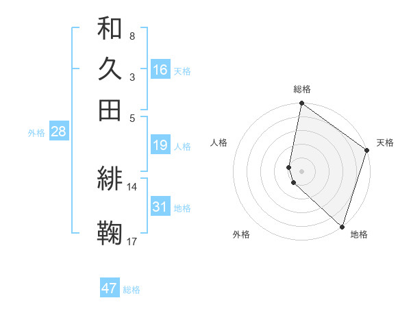 和久田 緋鞠さんを姓名の画数から五運を鑑定