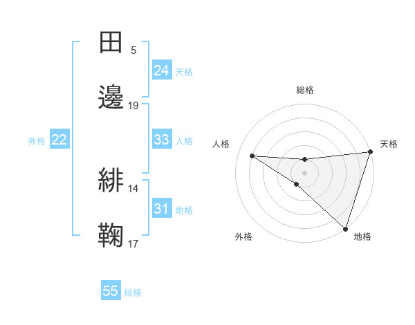 田邊 緋鞠さんを姓名の画数から五運を鑑定
