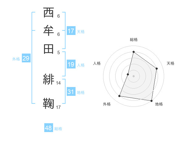 西牟田 緋鞠さんを姓名の画数から五運を鑑定