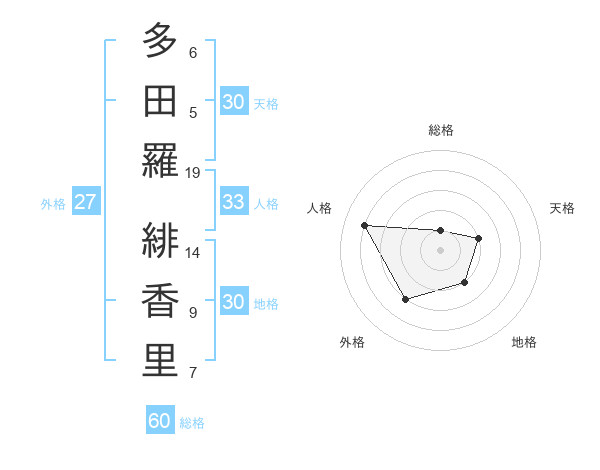 多田羅 緋香里さんを姓名の画数から五運を鑑定
