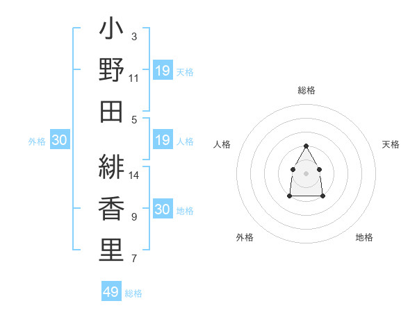 小野田 緋香里さんの総格は49画の2点!