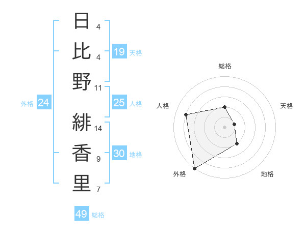 日比野 緋香里さんを姓名の画数から五運を鑑定