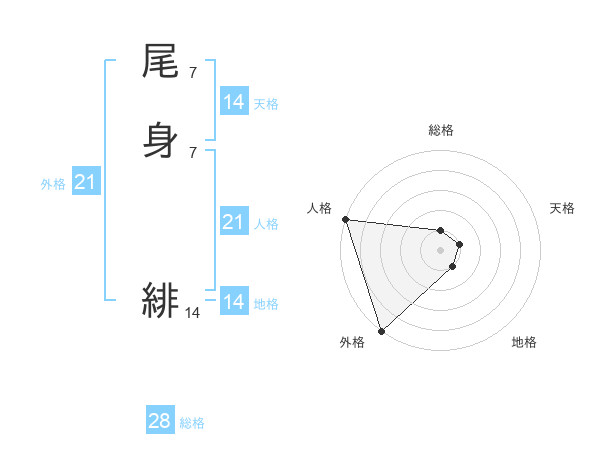 尾身 緋さんの外格は21画の5点!