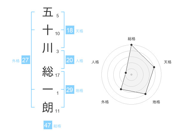 五十川 総一朗さんを姓名の画数から五運を鑑定