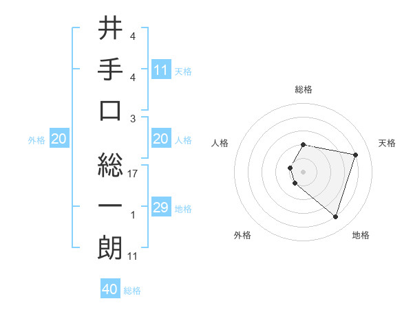 井手口 総一朗さんを姓名の画数から五運を鑑定