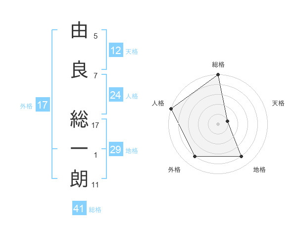 由良 総一朗さんを姓名の画数から五運を鑑定