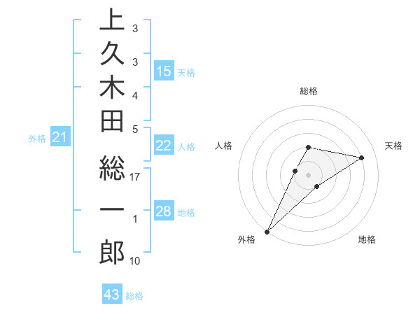 上久木田 総一郎さんを姓名の画数から五運を鑑定