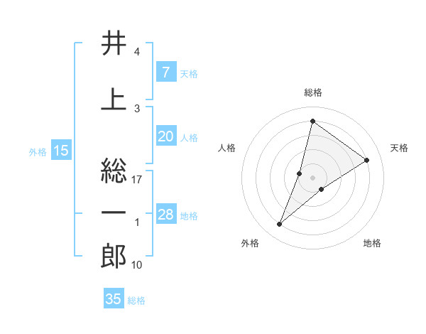 井上 総一郎さんを姓名の画数から五運を鑑定