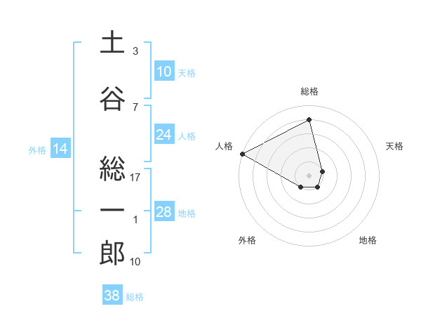 土谷 総一郎さんを姓名の画数から五運を鑑定