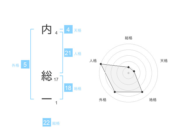 内 総一さんの外格は5画の4点!