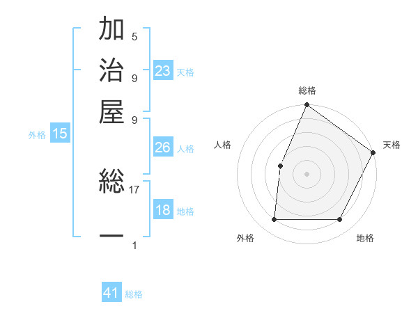 加治屋 総一さんを姓名の画数から五運を鑑定